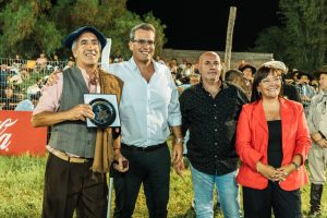 Uno de los momentos más significativos de la noche fue el reconocimiento a Daniel Fazi, histórico relator del Festival Nacional de Doma y Folklore de Jesús María, quien junto al payador Carlos Marchesini aportó su inconfundible voz y jerarquía a la jineteada, generando una ovación de respeto, por su a su extensa trayectoria en los grandes festivales del país.