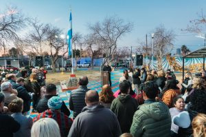 Este martes se vivió un emotivo acto en la Villa 12 de Octubre con la inauguración oficial de las obras de refacción integral de la Plaza Domingo Francisco Ferreyra, en un evento encabezado por el intendente de la Ciudad de Rawson, Dr. Carlos Munisaga. Acompañaron la ceremonia autoridades del Ejecutivo y Legislativo municipal, entre ellas el presidente del Honorable Concejo Deliberante, Dr. Ignacio Coronado Sáez; los concejales Adriana Díaz, Maximiliano Alessi, Gabriela Sosa, Vanina Andino; el secretario de Obras y Servicios, Facundo Cosma; funcionarios del gabinete municipal, personal municipal y vecinos y vecinas de la comunidad.