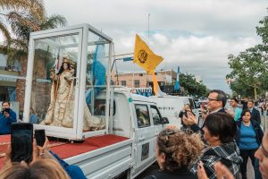 Carrascosa también resaltó el valor histórico y simbólico de esta presencia, al señalar que la Virgen recuerda el origen y la memoria de tantos pueblos fundados por familias que cruzaron la cordillera en busca de un futuro mejor. “Lo que se despierta hoy no es solo una devoción religiosa, no es solo una devoción a una imagen, sino que nos evoca la familia, lo que nuestros padres hicieron. Dejaron su sangre y su sudor en esta tierra y nos han heredado patria y fe”, expresó. Y añadió, con emoción, que para muchos fieles este era un sueño largamente esperado: “Muchos de ustedes pensaban que iban a morir sin poder verla y ella está acá”.