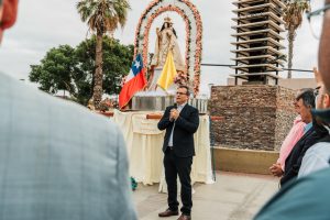 A su turno, el alcalde de Andacollo, Juan Carlos Alfaro, transmitió el saludo fraterno del pueblo chileno y agradeció especialmente la invitación cursada por el intendente de Rawson para concretar esta visita histórica. “Estamos muy contentos, estamos también muy satisfechos de poder venir con la delegación que venimos, porque la Virgen Peregrina nunca había salido de Chile”, expresó. Además, destacó el fervor y la devoción que la imagen genera tanto en su tierra como en San Juan, y remarcó el valor de esta experiencia compartida como un gesto de cercanía, fe y hermandad entre ambos pueblos.
